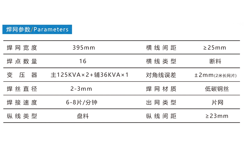 蛋雞籠隔片網(wǎng)焊接生產(chǎn)線,焊網(wǎng)寬度395mm,焊接絲徑2-3mm,焊接速度為6-8片/分鐘,橫線為斷料,縱線為盤料。標準配置:放線盤、儲料+校直輪、雙層料斗+自動落網(wǎng)、伺服往復(fù)拉網(wǎng)??蛇x配置:出網(wǎng)平臺(配剪板機)、簡易循環(huán)冷卻器。河北驕陽焊工有限公司,0318-7063097